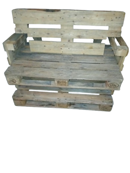 Solid og rustik pallesofa lavet af brugte Europaller. Perfekt til haven, altanen eller terrassen. Klar til brug stabil og bæredygtig.